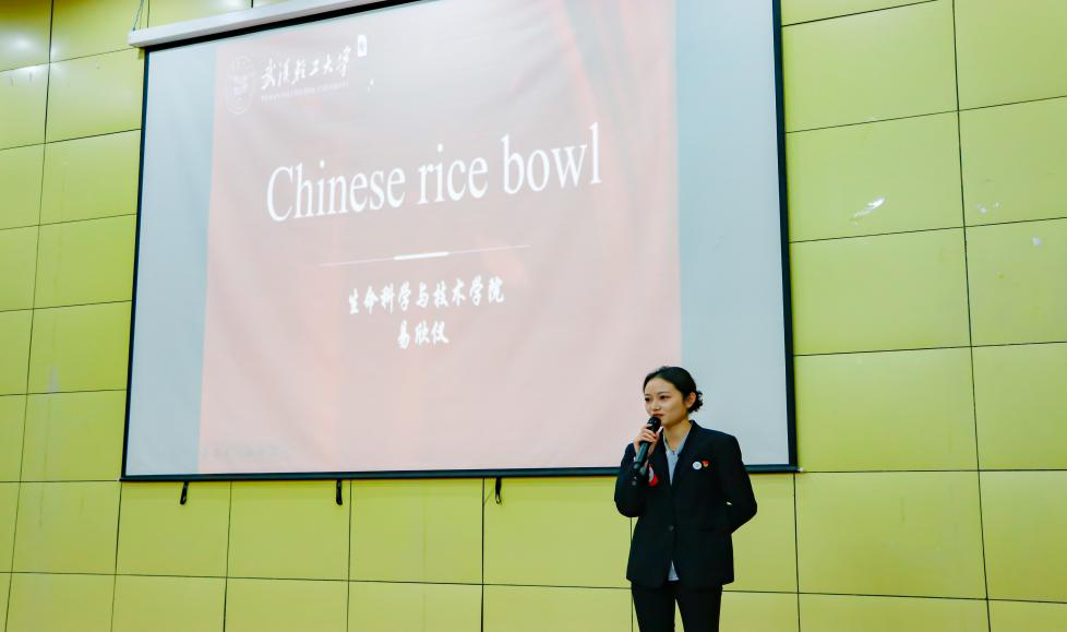 本次演讲比赛中,易欣仪同学以“Chinese rice bowl”为题,通过介绍袁隆平的学生李建武,同样是一名杂交水稻研究人员,扎根于稻田,延续“袁”草下稻、杂交水稻覆盖全世界的梦想,种植水稻的故事,为中国食品工业、全人类的发展做出了巨大贡献,即从微观的视角展现了十年发展对研究命运的巨大变化,突出“人民美好生活”,表达无处不在的“动人瞬间”,易欣仪同学用流利的英语口语,娓娓道来,诠释出中华民族这十年的美好变化,吸引着在场的每一位观众。