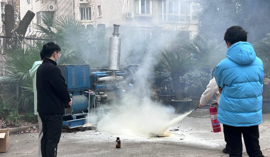同时,为了使同学们掌握好消防知识,并具备自救的能力。孙老师在户外空旷场所为大家介绍了常规消防设施的使用,并现场演示了灭火器的正确使用方法,让大家对消防知识有了更直观的了解。四名同学亲身体验了灭火的过程,掌握了灭火器的正确使用方法。