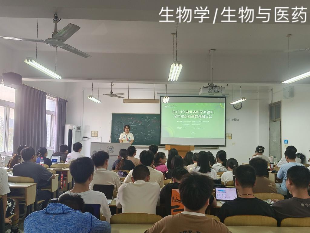 为深入学习贯彻党的二十大精神,加强科研作风和学风建设,营造良好的科研氛围,我院于9月27号组织学生集中观看“2024年湖北省科学道德和学风建设宣讲教育报告会”回放活动,学院新入职青年教师、新上岗研究生导师代表自行收看报告会直播,观看人次达到200余人。