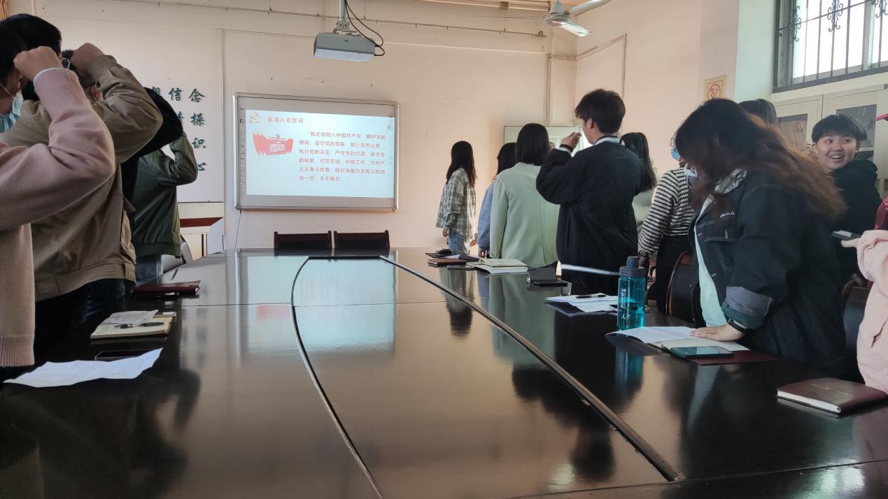 12月9日,yh533388银河在党员活动室通过线上和线下相结合的方式举行新党员入党宣誓仪式,学院党委副书记罗霄、全体新发展党员参加宣誓仪式。
