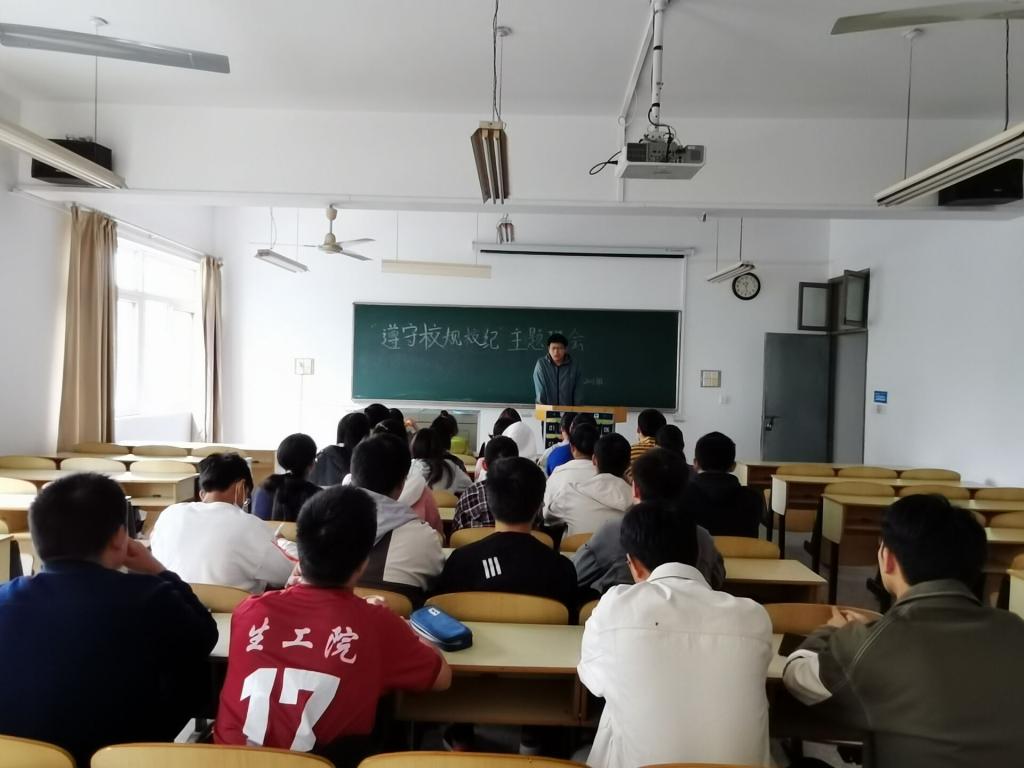 为维护学校正常教育教学和生活秩序,加强校风和学风建设,使学生树立规则意识,我院于10月份开展了“遵守校纪校规,做合格大学生”主题班会。