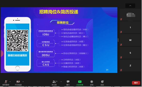 2021年3月8日(周一) 14:30,生工学院借助Zoom会议平台举办了武汉药明康德新药开发有限公司线上招聘会,本次线上招聘会是由该公司的HR主持。