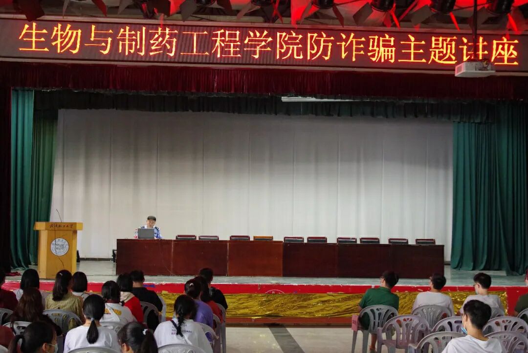 2020年9月30日下午,我院邀请常青派出所高警官在常青校区梅花餐厅三楼大学生活动中心开展以防诈骗为主题的专题讲座,生物与制药工程学院的大一新生到场聆听讲座。