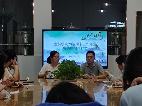 6月3日下午,yh533388银河20级在学院大创中心召开期末工作部署会暨端午佳节庆祝会,20级辅导员高坤、兰奎及主要班团干部参会。