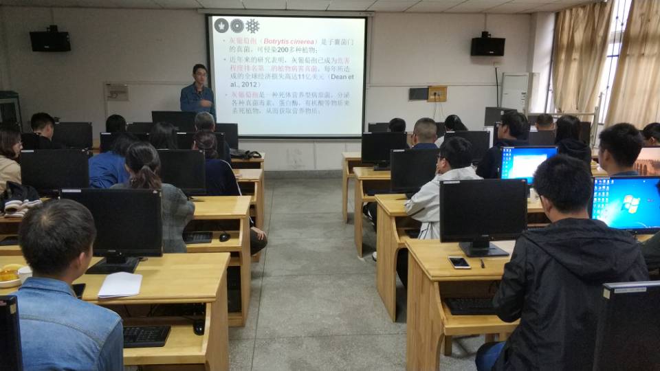2018年10月25日下午2:30,我院第二期学术沙龙活动在生化楼412成功举办,活动由闫达中教授主持,我院优秀学者朱闻君老师做了主题为“灰葡萄孢小分子分泌蛋白的功能研究”的学术报告,报告结束后,参会的老师们和研究生们与朱老师围绕主题进行了激烈地提问探讨与交流。