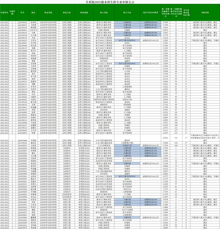为确保2022级本科生转专业工作公开、公平、公正、择优完成,现将学院审核结果公示如下: