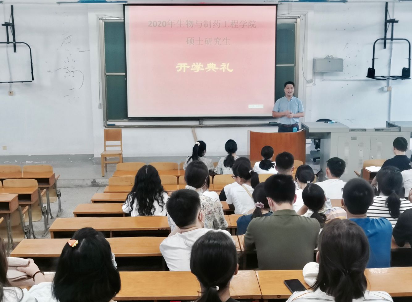 2020年9月9日下午2点,生物与制药工程学院硕士研究生开学典礼在医护楼二楼电教室举行。我院王宏勋院长、易文君书记、王丽梅副教授、刘晓红主任、余爽老师、牛佳老师出席并发表讲话。会议由杨江科副院长主持,生工学院2020年硕士研究生全体新生参加开学典礼。