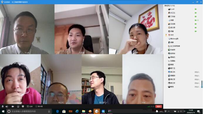 5月14日下午,我院举行了期中教学检查教师在线座谈会,会议由教学院长曾万勇主持,易文君书记、王宏勋院长以及来自生物工程、生物技术、制药工程、生物制药等各系的14名教师代表参加了本次会议。