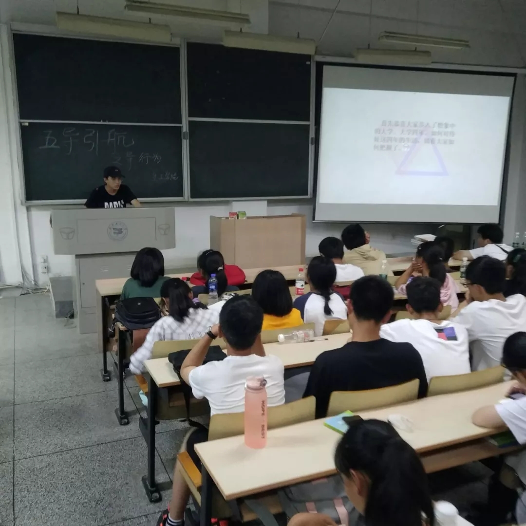 为了让新生们更快地适应大学生活,树立远大理想,在实践中不断充实与提升自我,过好人生中的黄金四年,2019年9月16日,我院于常青校区2号楼开展"五导引航"新生入学引导活动,本次活动在多个教室同时进行,2019级新生导学员从"导理想"、"导学习"、"导生活"、"导行为"、"导心理"五个方面为新生带去宝贵的指导建议。