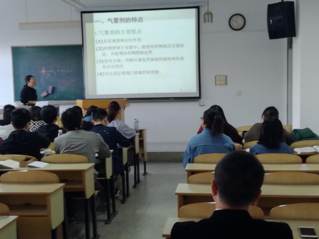 2018年11月2日,制药工程系组织各位老师在3号教学楼204室进行了一次本科教学观摩活动。各位老师认真聆听了植飞老师主讲的《药剂学》双语课程,课堂内容重点讲解了气雾剂,包括气雾剂的分类,不同气雾剂的优缺点,气雾剂的特殊装置等。老师和同学从中了解到药物剂型对吸收的影响。课后,各位也对课堂上课的仪表仪态、内容的科学性、多媒体制作等方面进行了探讨,植飞老师课程内容的紧密性、多媒体的生动性让大家印象深刻,亦就与学生的互动、板书等内容与植飞老师进行了探讨,大家都从相互交流获取了经验,为以后提升教学水平奠定更好的基础。