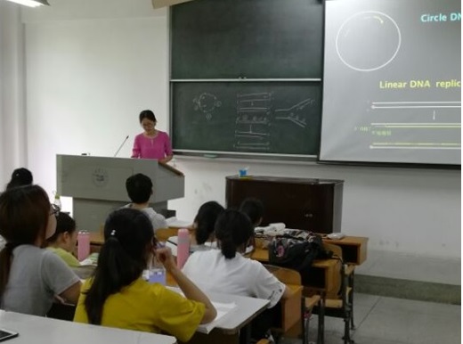 2018年5月15日,我院生物技术系组织老师在2栋-201进行了本科教学观摩活动。各位老师认真观摩了张可老师主讲的《分子生物学》课程,首先张老师复习了上一节学习的知识内容,课堂内容重点讲解了原核生物的DNA 复制体结构等。