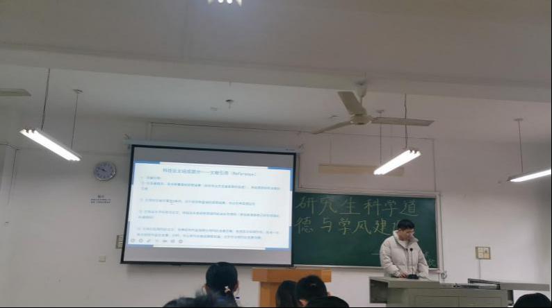 王丽梅副教授以“迈好学术生涯的第一步”为主题,首先就什么是科学道德与学风问题进行讲解,列举了发生在国内外教育界、科技界的一些典型的学术腐败及学术失范事件,强调了我国加强科学道德和学风建设的重要性和必要性。随后详细讲解“学术不端十大行为”,并向同学们列举了近年来学术中出现的失信案例,如“湖南大学研究生论文全文抄袭”事件、“著名海归学者被曝论文造假”事件等,提出研究生科研工作中坚决不能出现的学术不端行为。讲座进一步强调了研究生科研活动中应当自觉遵守的十大学术规范:实验或论文数据需真实、不造假、不篡改;学术论文不抄袭、不剽窃、不一稿多投以及学术成果需正确署名,尊重事实等。讲座对帮助研究生自觉遵守科学道德、学术规范起到很好的警示和教育作用。