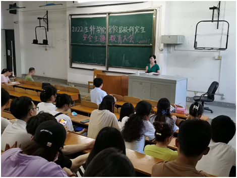 7月1日,yh533388银河于医护楼二楼电教室召开暑假留校研究生安全主题教育大会,副院长杨江科教授、院长助理王丽梅副教授、实验员孙璐宏老师、辅导员高坤老师以及全体留校研究生参会。