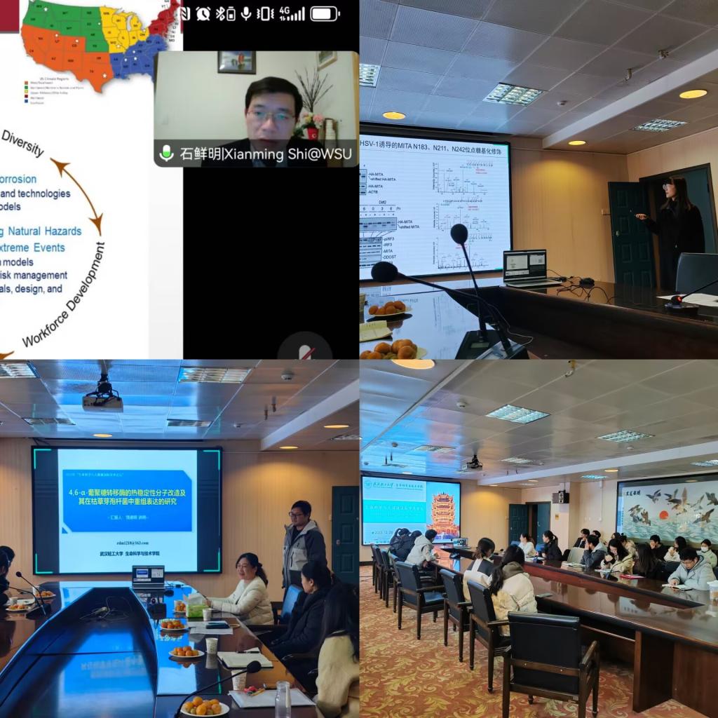韩国东亚大学的李善雨教授以“与细菌性青桔病抗性相关的番茄根系微生物组研究”为题进行了深入的阐述,强调通过了解植物根系样本中的微生物组,可以更精准的进行生物防控;美国华盛顿州立大学石鲜明教授分享了以“微生物学在可持续交通和韧性方面的应用”为主题的报告,重点介绍了微生物产品在改善道路结冰方面的应用;来自华中农业大学的博士研究生安立进则详细阐述了“睾丸酮丛毛单胞菌JL40中一种新型锑外排操纵子的鉴定及功能分析”;我院教师涂怡对“DDOST在cGAS-MITA/STING抗病毒天然免疫信号通路中的分子机制研究” 作了深入的分享;饶德明老师从“4,6-α-葡聚糖转移酶的热稳定性分子改造及其在枯草芽孢杆菌中重组表达的研究”方面进行了详细的阐述;韩笛老师报告了“循环恶性细胞基因检测和治疗的多功能核酸传递系统的研究”。两位研究生王明洁、吴蔚也分别作了相关的研究报告。整个会议期间,与会者积极互动,展开了热烈的学术讨论,学术讨论氛围十分浓厚。
