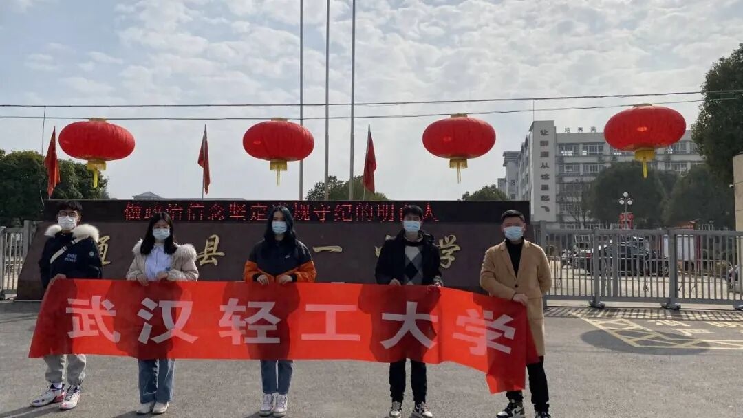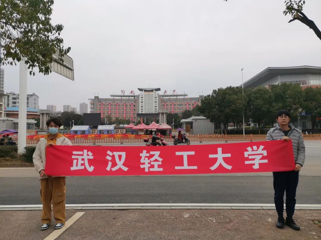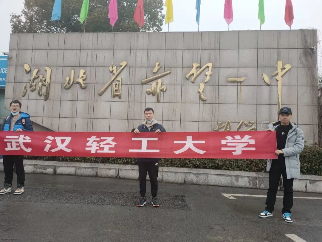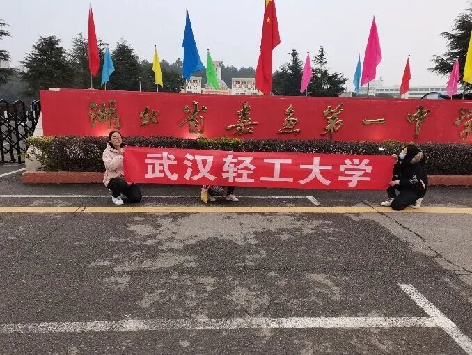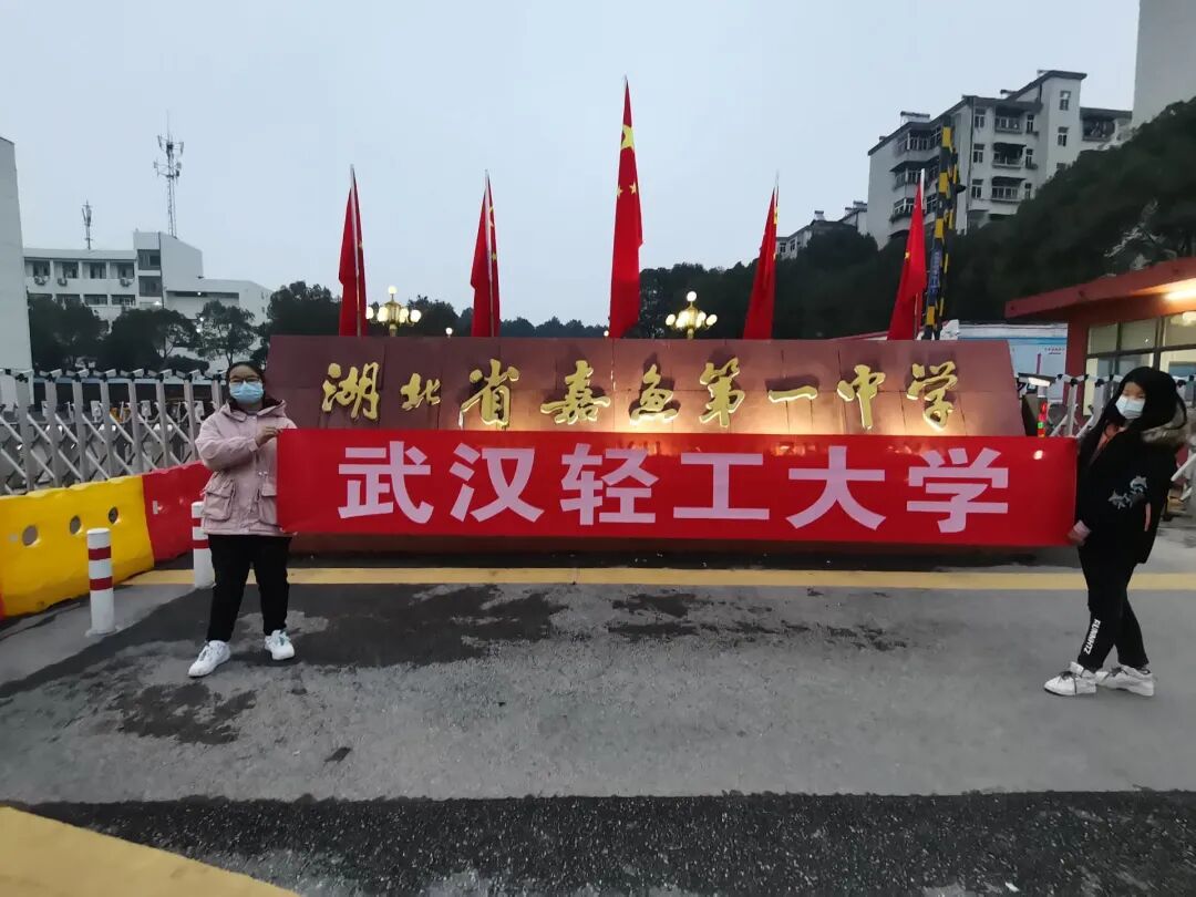 2月5号那天,我带好提前准备好的材料前往我的母校—嘉鱼县第一中学。首先我就带着打印好的学校简介去到了几个班级给学弟学妹们宣传介绍,但由于他们现在在积极备考,就没来得及合影留念,还是有点遗憾的……临走前,我和同来的朋友一起拉着我制作的横幅,在校门口拍了几张照片,感觉十分有成就感。