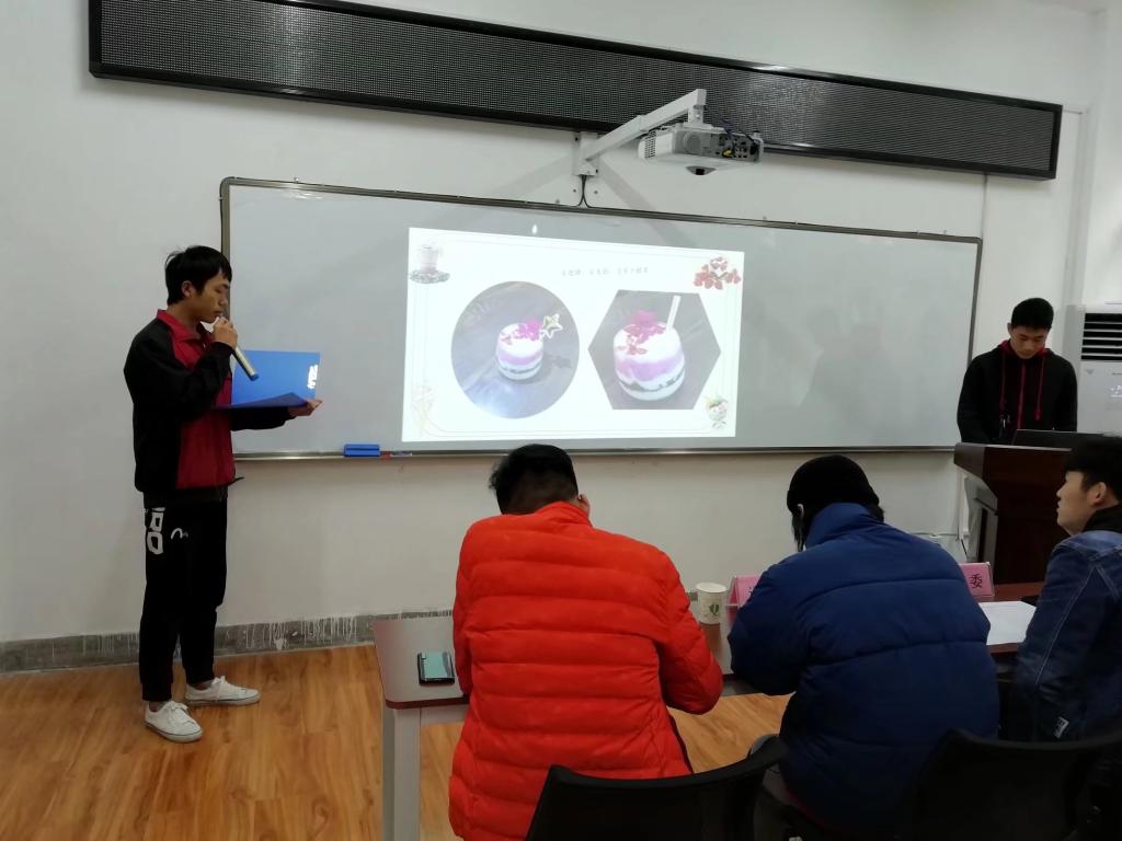 酸奶产品评比完成后,紧接着进行的是各小组PPT讲解展示。在本环节中,每组代表按照抽签顺序上台展示提前制作好的PPT并从组名、组内成员、设计理念以及制作方法等方面展开介绍。十二个参赛小组各有特色,无不体现集体的智慧与力量。