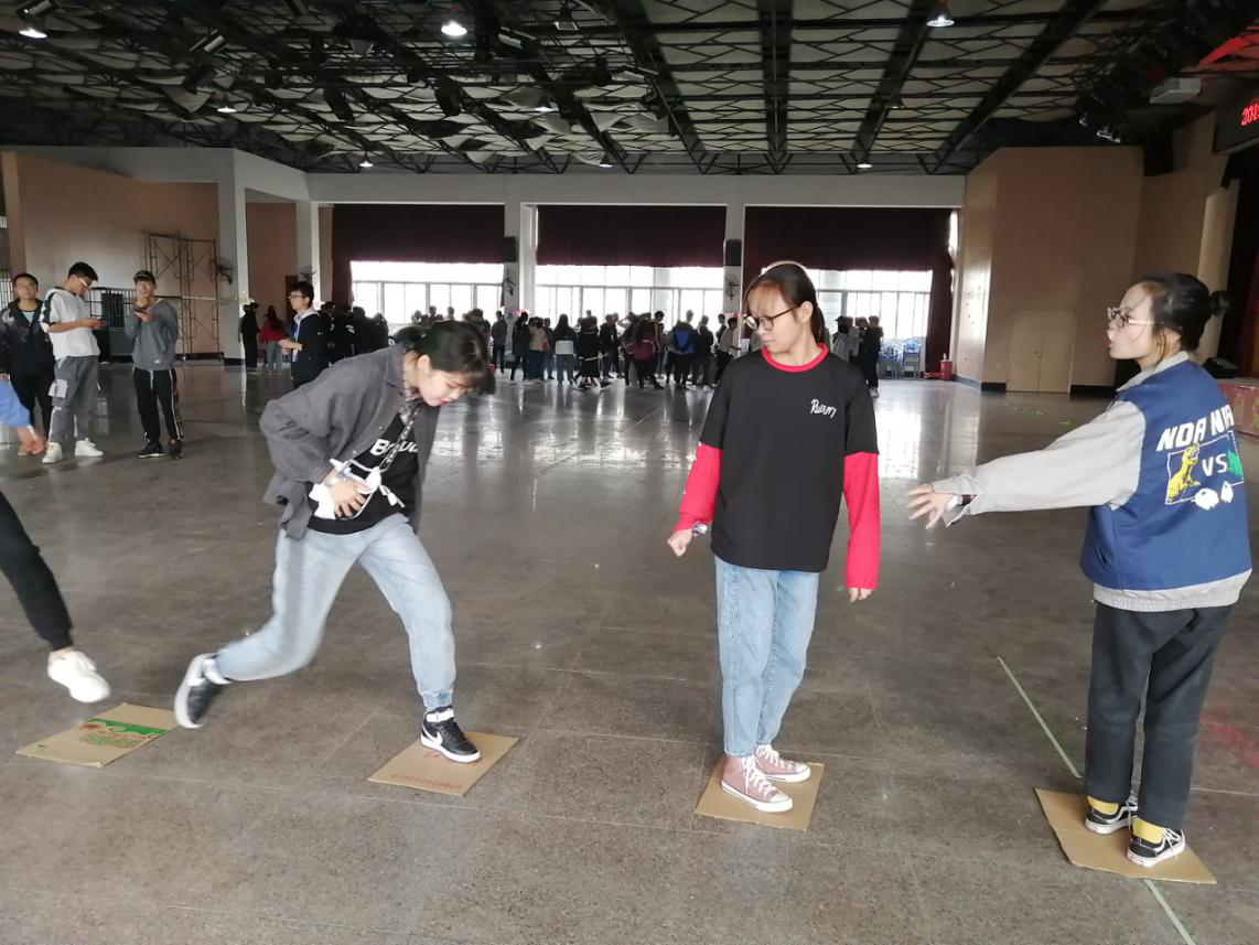 到场的分团委、学生会成员抽取一条丝带,以丝带颜色进行分组。活动从一个简单的暖场游戏开始,看似简单的游戏却促进了大家的友谊。暖场游戏之后,大家以小组为单位,开启了游戏之旅,共同为自己的团队而努力。在“拆西桥补东桥”、“饿了吗”、“背对背拥抱”、“针锋相对”等各具特色的游戏中,每一位小组成员都参与其中,拼尽全力,既为所在小组做出自己的贡献,也在欢声笑语之中收获了友谊。交换礼物环节中,参与成员两两随机配对,交换早已准备好的礼物,小小的礼物背后是一份份真诚的心意。