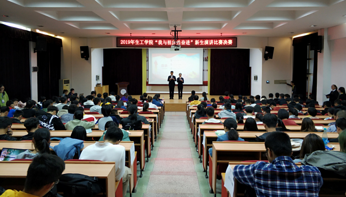 为庆祝新中国成立70周年,激发学生的爱国情怀,唱响新时代青春之歌,2019年10月25日晚,由生工学院科技创新与创业协会举办的2019级“我与祖国共奋进”新生演讲比赛决赛在常青科学报告厅成功举行。出席本次比赛的嘉宾有生工学院2019级辅导员龙俊伟老师,生工学院分团委学生会主席团成员。