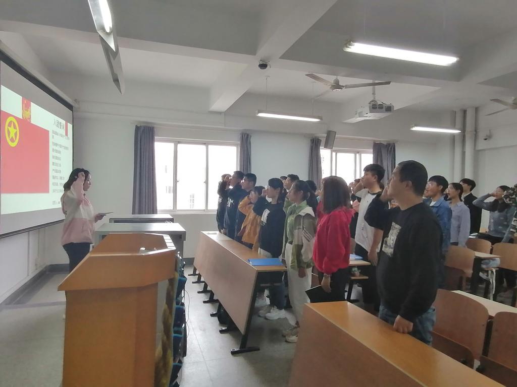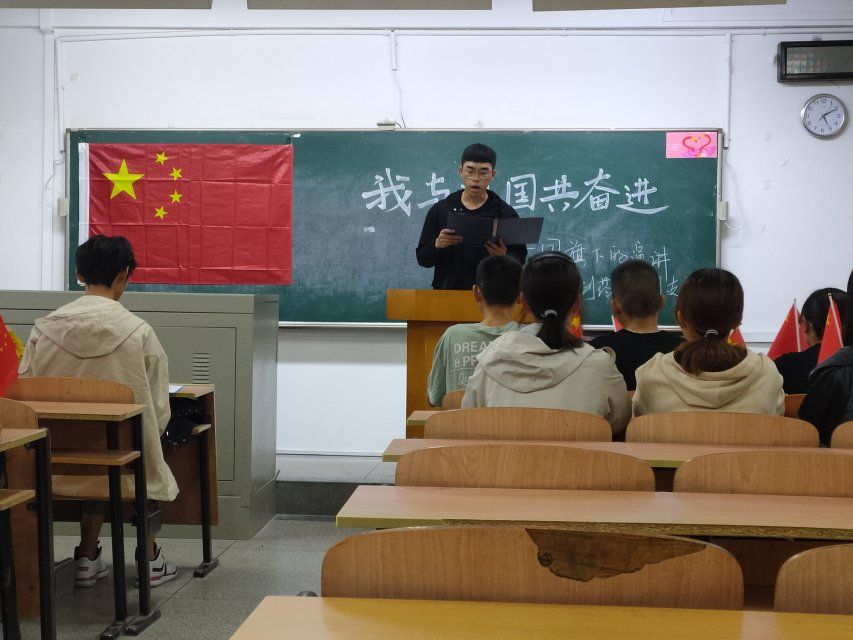 全体团员重温入团誓词,齐唱团歌。团员代表从了解中国国情,感受中国力量,自信中国梦想三个层面,通过发生在自己身上的真实故事讲述了他们心中的爱国,字里行间充满了自信心和自豪感。