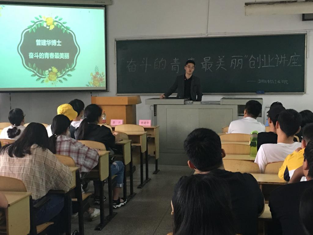 为了激发同学们创业的激情。由生工学院分团委、学生会举办的“奋斗的青春最美丽”主题创业讲座于5月30日14:30在科教204如期举行。莅临本次讲座的有生工学院党委副书记李静、分团委书记叶青。