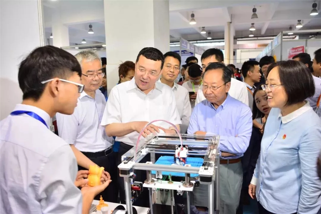 省委常委、统战部部长尔肯江•吐拉洪,大赛评委会主任、中科院院士叶朝辉,团省委书记张桂华等领导在我校党委书记谭晓明、校长王志勇等陪同下观摩终审决赛作品展示