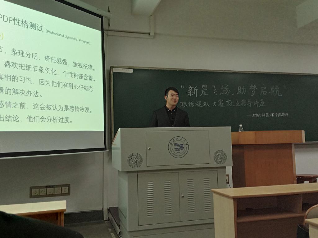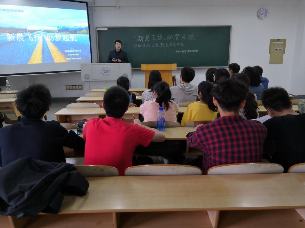 为引导大学生树立正确的创业与就业观,增强大学生的就业意识,激发学生的创新创业热情,生工学院于2019年4月25日晚上6:00,在科教楼707教室举行了“新晨飞扬,助梦启航”创业与就业指导讲座。本次讲座由生工学院分团委、学生会与江苏恒瑞新晨医药有限公司合作举办,并由江苏新晨药业公司的HR周帅领为在座的同学进行讲解和指导。