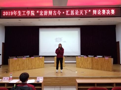 为了展现大学生的思辨能力和临场发挥能力,由生工学院学生会学研部主办的"宏辞辩古今,汇思论天下"辩论赛决赛于2019年3月22日晚上18:30在科学报告厅正式举行。此次大赛的评委有生工学院分团委、学生会主席团成员,校辩论队队长邓蜜以及副队孙童。