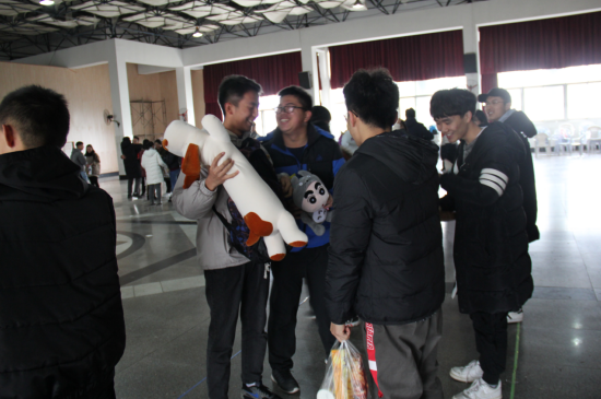 到场的分团委、学生会成员抽取一条丝带,以丝带颜色为标准进行分组,一共分了12组,当然主席团成员也积极参与游戏之中。活动从一个简单的暖场游戏开始,看似简单的游戏促进了成员们之间友谊。暖场游戏之后,各个小组开始自己的游戏之旅。在“校长吃热狗”、“砸排球”、“接力游戏”、“含水猜词”等游戏中,参与游戏的成员无不拼尽全力,为自己的小组做出一份贡献,同时在游戏中,小组成员也增强了合作意识,共同完成了所有游戏。交换礼物的环节中,参与人员两两随机配对,交换自己所准备的礼物,小小的礼物包含着无价的心意。“火炎焱燚”队最终获得了12个队伍中的第一名。
