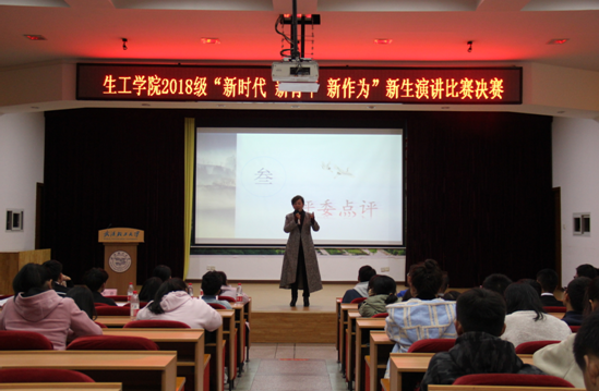 此次“新时代 新青年 新作为”新生演讲比赛决赛的圆满结束,为生工学院2018级新生提供了一个锻炼与展现自己的良好平台,引发了新生们对新时代的深入思考,并对实际生活有所启发,使他们在步入人生新阶段之时,能够确立明确的目标,为之实践,开启一段不凡的新征程。“青年志则国志,青年强则国强”身为当代大学生我们要做有担当的新青年,要勇争先锋,不做时代的看客。要自强不息,坚强勇敢,将新时代开创得更加美好!