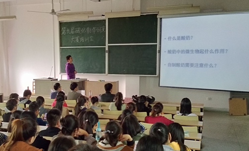 本次酸奶大赛的预选赛形式是笔试和面试,笔试的内容包括了酸奶制作及食用等基本知识以及关于创新能力的测试,而面试则是通过向参赛选手提问有关团队合作、创意想法、时间分配等问题来对参赛选手有一个初步了解,判断选手的临场发挥能力以及应变能力。通过综合考量,120位同学脱颖而出进入酸奶初赛。而在18日的培训会中,组委会邀请到专业老师李鑫老师从酸奶的成分、制作工艺、实验室制作规范等角度为选手们进行专业细致的培训。同时,组委会为选手们详细介绍了酸奶制作创意大赛的比赛形式与评比依据。