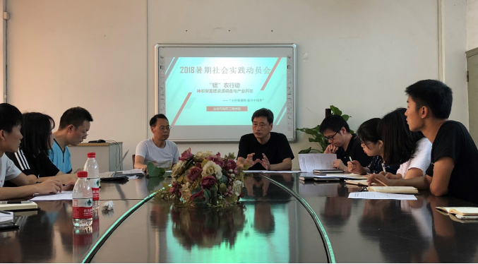 为使本次调查顺利进行,本次暑期实践团队——“锶”农行动小组于2018年7月3日下午14:30召开动员会,本次会议邀请生工学院党委书记严建芳、院长刘志国、系主任曾万勇老师、分团委书记叶青老师和经管学院祁红涛博士出席指导。