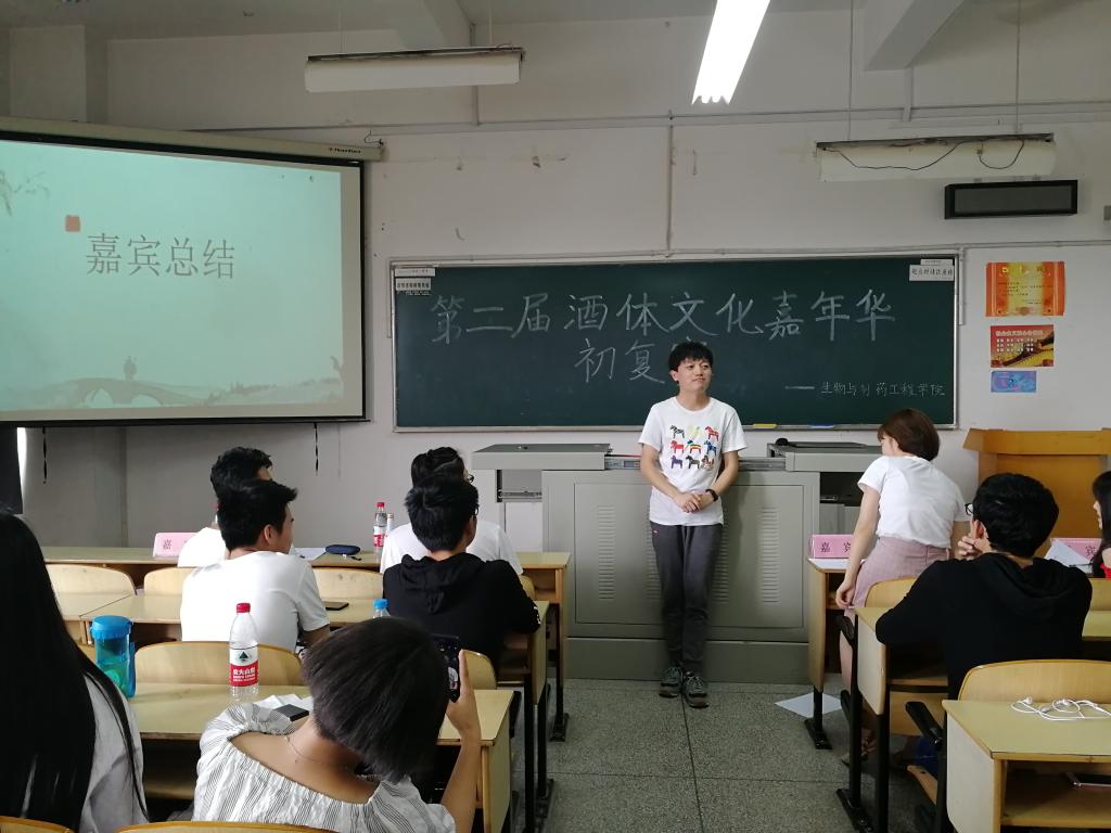 中华酒文化博大精深,酒香酒色醉人心脾。为弘扬中华民族酒文化,生工学院结合自身专业特色开展了“酒承文化,盛世中华”第二届酒体文化嘉年华。此次嘉年华的初复赛于6月3日14:00在科教楼204教室正式举行。莅临本次比赛的嘉宾及评委是生工学院分团委学生会分团委副书记赵金标,秘书长王丽珠以及副主席段意茹、胡硕。