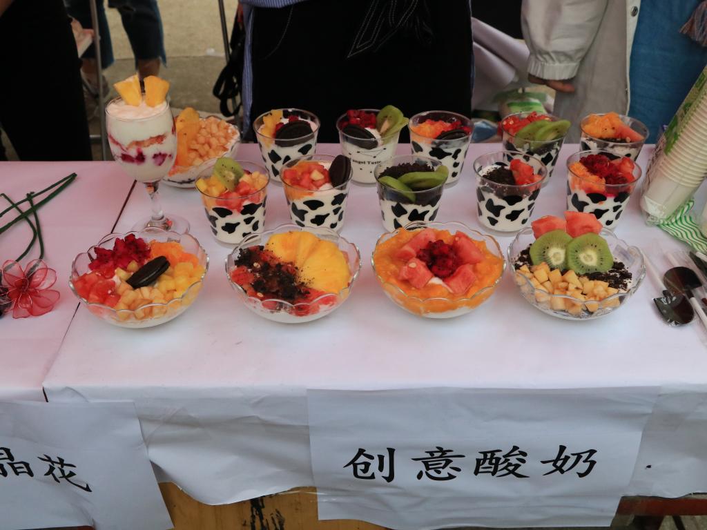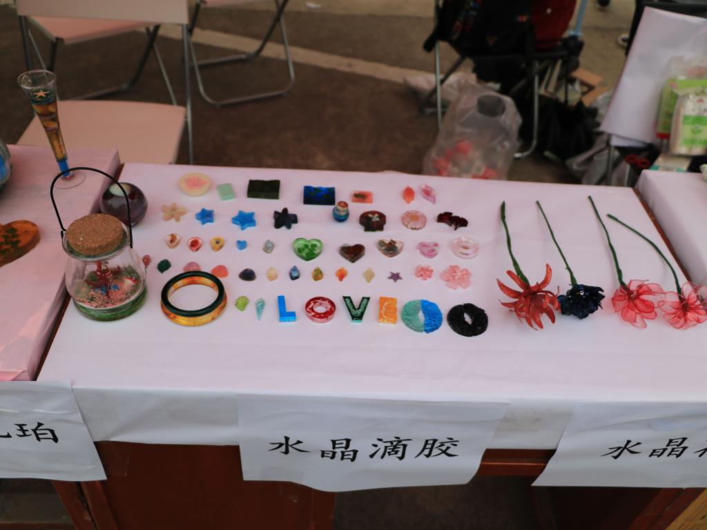 活动于下午一点半正式开始,各展区早已严阵以待,观众们也迫不及待地,进场参观,现场热闹的气氛充分体现了我校学子的青春活力。在生工学院的帐篷里,整齐摆放着由生工学院科技创新与创业的小伙伴们精心制作的精美的人工琥珀、漂亮的水晶花、独特的水晶滴胶、实用的叶脉书签,而对于吃货来说,最吸引人的是色味俱全的创意酸奶,活动刚开始,我院的展品很快吸引了观众们的目光,帐篷外都挤满了人,同学们对可口的酸奶赞不绝口。观赏过这些精美的展品后,同学们都表现出极大的好奇心,而专业人员则耐心的为同学们讲解这些展品的制作方法。轻工大学十二个院,每个院都展示出了自己独一无二的科技作品,体现出了轻工学子独特的创新魅力。除此之外,还有慷慨激昂的武术和豪放霸气的舞龙表演,悠扬动听的乐音及撩人心弦的舞蹈,当然更有饱含人文风情的艺术作品集……到场的观众无不积极参观,热情高涨,赞叹不绝。