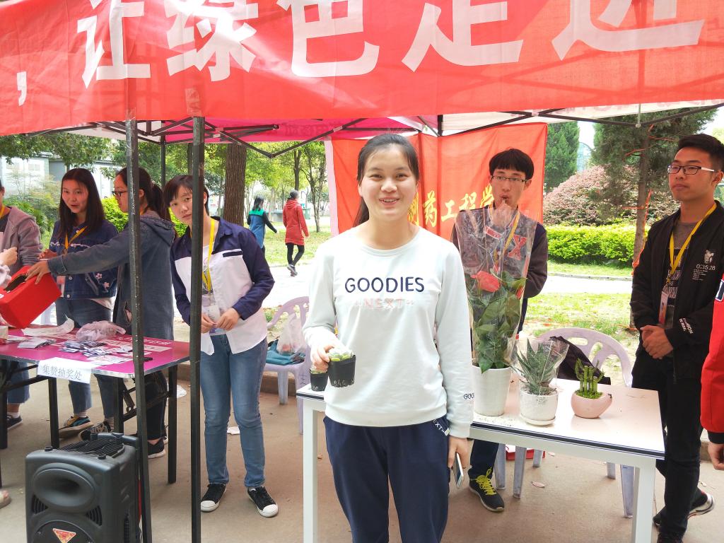 活动刚开始,工作人员精心准备的绿植就吸引了很多同学前来围观,面对同学们的热情,工作人员耐心的解释着本次活动的目的和参与方式——关注官方QQ和生工分团委公众号便可参与抽奖。在同学们对绿植领养的活动内容有了一定的了解之后热情大涨,面对绿意盎然的植物毫无抵抗力。纷纷拿出手机扫描外场准备好的二维码进行抽奖,在抽到自己喜欢的植物时更是激动地和工作人员合影留念,在同学们的热情参与下,种子和绿色植物渐渐的被它的新主人领走,此次外场宣传活动也接近了尾声。