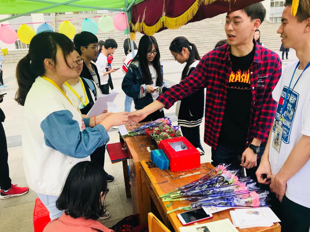本次外场活动于下午一点开始,此次外场有与陌生人拥抱和有奖竞答等活动。在外场活动中,前来参加活动的同学络绎不绝。有奖竞答的奖品多种多样,有明信片、鲜花、多肉盆栽等。参加有奖竞答的同学除了能得到奖品之外,最重要的是还能学到关于心理健康方面的知识。还有不少的同学可以鼓起勇气和陌生人拥抱,感受来自大学校园中校友们的不熟识但十分温暖亲切的关爱。这次活动只是心理健康教育节的一个预热,日后的一个多月里还有更多精彩有趣的活动等待同学们的参与!