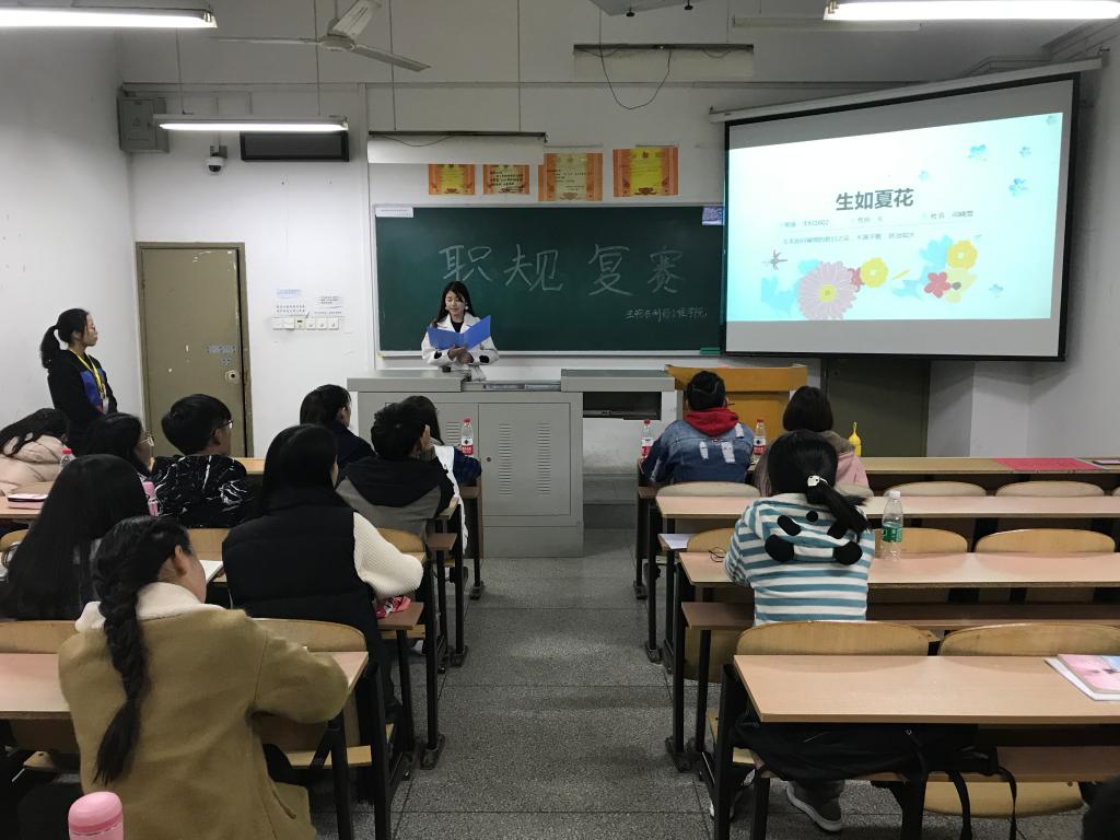 经过复赛的筛选,将从21名参赛人员中选出10名成功晋级复赛。本次比赛流程分为两部分:参赛人员讲解职业生涯规划和评委提问环节。选手借助PPT来讲述自己的职业规划,对自我认识和外部环境进行了全面的分析,提出了自己的职业目标、发展路径和行动规划,并从可操作性和现实意义等方面进行了细致阐述,选手的演讲引起了大家对自我职业生涯的思考。同时选手展示了个人简介、现状分析、职业认识以及未来职业猜想,还有对个人的缺点改正和寄语等。无论是精美的PPT展示,还是即兴演讲、流畅的肢体语言无不体现出选手们准备充分。
