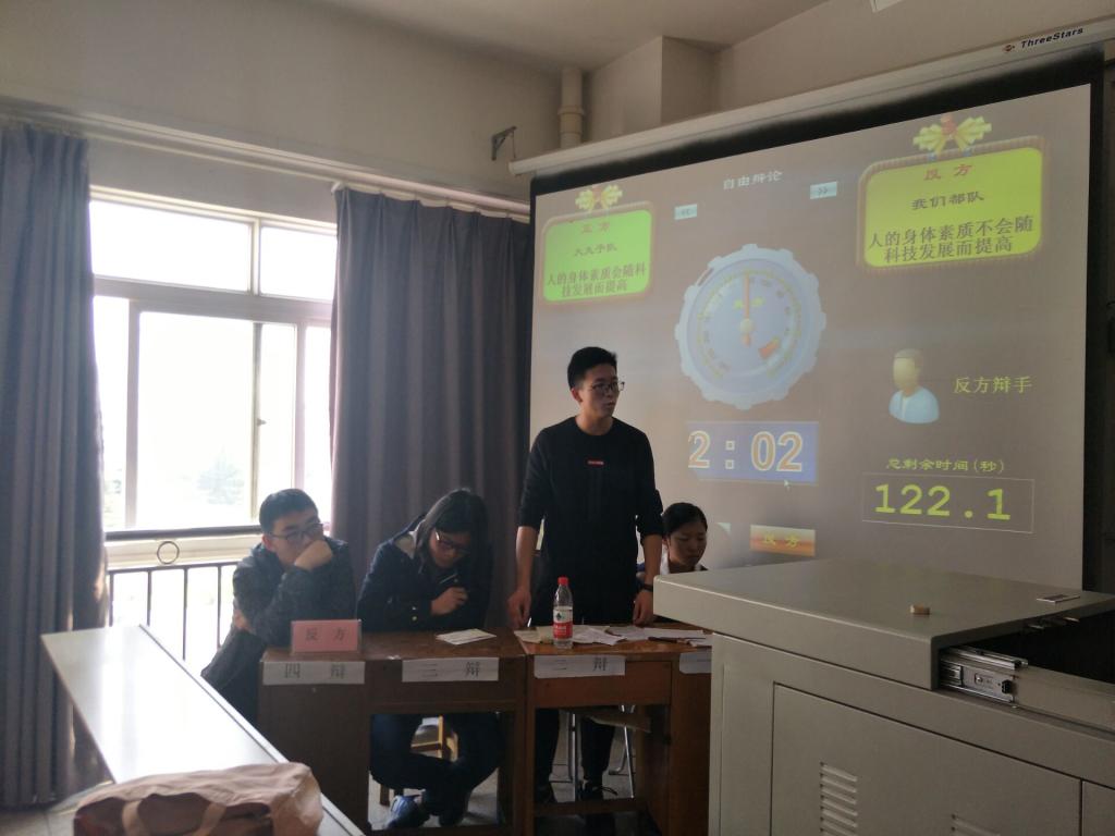 比赛开始前先由主持人介绍出席的各位评委,并邀请双方辩手作自我介绍,然后主持人宣读完本次比赛注意事项后,紧张的辩论赛便拉开了帷幕。首先由正反方一辩先后进行为时3分钟的立论陈词,双方举出大量的事实和数据证明自己的观点。紧接着,由正反方的二辩分别选择对方的二辩或三辩开始一分三十秒的一对一攻辩,此环节中,双方都提出来犀利的问题企图驳倒对方。随后由正反方三辩分别选择对方的二辩或三辩进行第二轮的一对一攻辩,进攻之势愈加猛烈。攻辩环节之后的是辩论赛最精彩的部分:长达八分钟的自由辩论时间。双方的轮流发言逻辑清晰,语言完整,分条陈述了自己观点的同时还尽力找出对手逻辑上的漏洞进行反驳。每到精彩发言时,现场便爆发出一阵热烈的掌声,气氛十分火热,比赛节奏紧促。经过跌宕起伏的自由辩论后,在场观众向正反两方分别提出一个问题并由相应辩手进行限时一分钟的回答。现场观众提出的问题也十分辛辣,看得出是认真观看了比赛并自己思考得出的问题。比赛的最后则由正反方四辩分别进行四分钟的总结陈词。