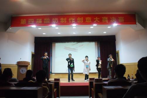 通过一段精心制作的赛程回顾短片,主办方带领在场观众领略了本届酸奶制作创意大赛的独特魅力。经过报名宣传、面试组队、实践培训、实验室操作、外场宣传、复赛比拼等一个多月的重重考验,“七彩梦之队”、“逐味部落”等6支队伍成功晋级到决赛环节。这6支团队由生工、化环、经管、食品、动科、医护、机械、外语等八个学院的选手自由组合而成,他们充分发挥各自专业优势和团队力量,围绕“中国梦”等主题,在酸奶制作创意解说、酸奶产品展示、营销剧表演等环节中,尽情展示青春活力和梦想创意。