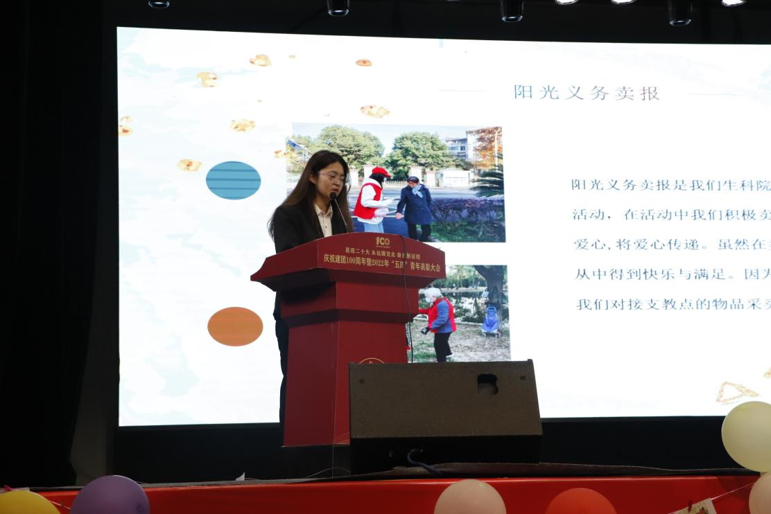 其中,我院李娜娜同学荣获“志愿先锋”先进个人,我院“花朵计划”志愿服务团队荣获“志愿先锋”先进集体与“2021年度优秀志愿服务集体”称号。同时,我院王雪霏同学也在此次活动中代表青年志愿者协会向在场的嘉宾们分享了这一年以来青协的志愿经历与心得体会,展现了我院青协的的志愿经历与成果。