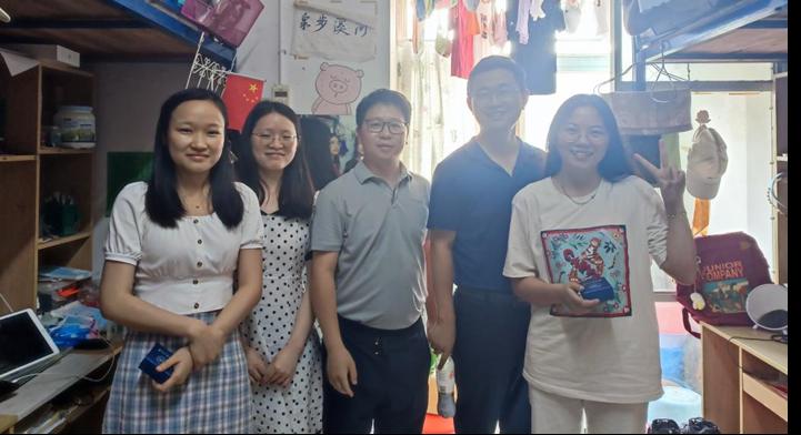 在学生代表的引导下,老师们前往毕业生宿舍进行走访。师生们在学生宿舍畅所欲言,老师对毕业生致以亲切的问候并给予真诚的建议,话题就就业问题徐徐展开。谈到毕业去向,同学们角度不一,老师们结合自己的经验,对每种就业方式进行了优劣分析,并提出建议,同时强调要努力踏实工作,知行合一,让职场之路更加顺畅。在学习方面,老师对考研上岸的毕业生给予极大的赞赏,期望他们能在研究生阶段再接再厉,不忘初心,立大志、明大德、成大才。对考研失利的同学也给予了肯定与鼓励。最后,书记和院长代表生科院学子们向毕业生们赠送毕业礼物,给予毕业生最美好的祝愿。