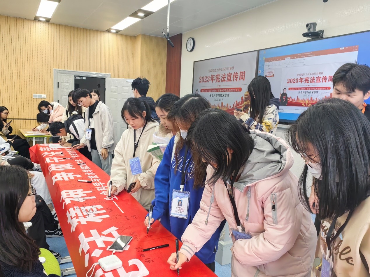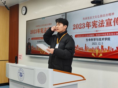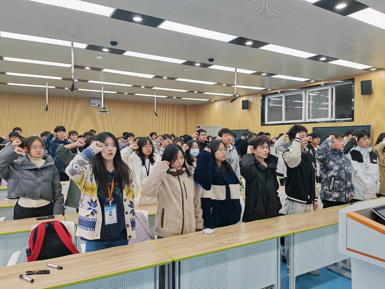2023年12月5日,我院学生于积学楼210教室举行了宪法宣誓活动,同学们庄严地表达了对宪法的尊崇和对法治社会的坚定信仰,展现了新时代大学生的责任与使命。