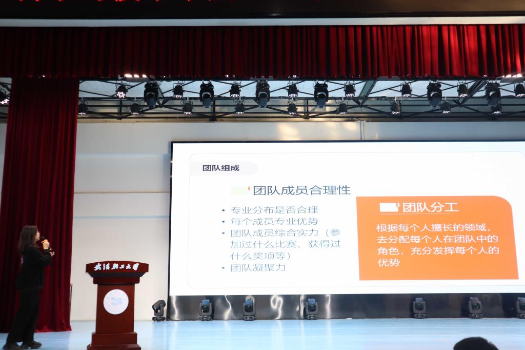 梁雪阳同学向大家介绍了参加“互联网+”大学生创新创业大赛的准备工作。她强调了团队建设的重要性,并分享了团队在参赛过程中的经验。她提到,一个好的团队要有共同的目标和理念,成员之间要相互信任、互相支持。