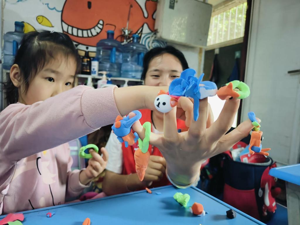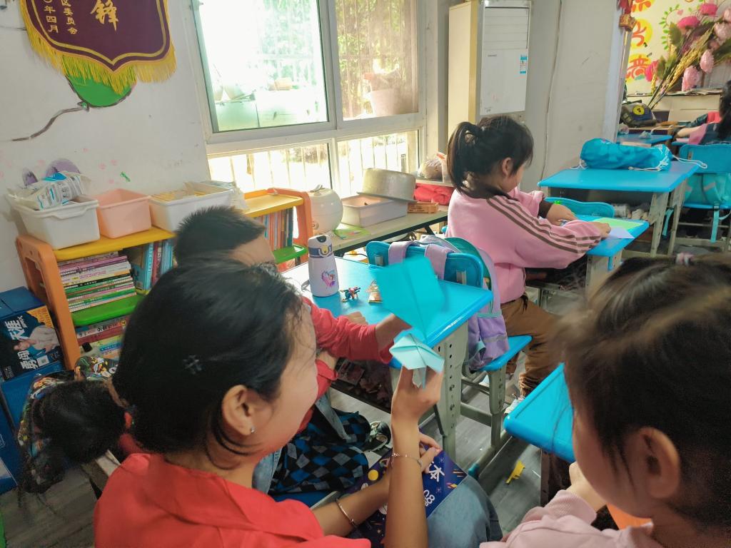 在本次支教活动中志愿者与小朋友们一起折纸,朗读诗歌,做手工。有一位小男孩在折纸时说道:“我想要开飞机”。志愿者鼓励他要努力学习、锻炼身体,总有一天会实现自己的梦想,在梦想的天空肆意翱翔。孩子们青涩的面庞和纯洁的笑容在很短的志愿时间里刻印在志愿者的脑海中,现场的欢笑声此起彼伏,连绵不断。