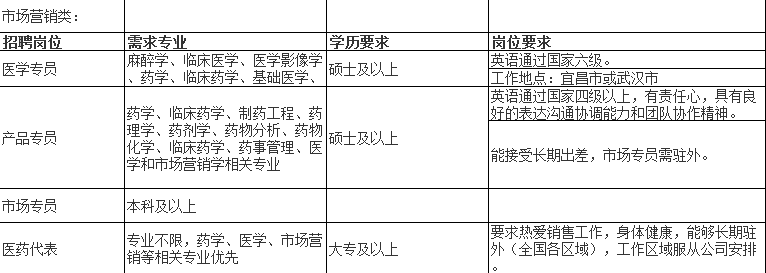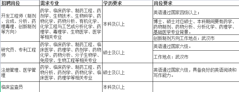 工作地点:宜昌高新区人福工业园、宜昌市远安园区、武汉市当代梦工场