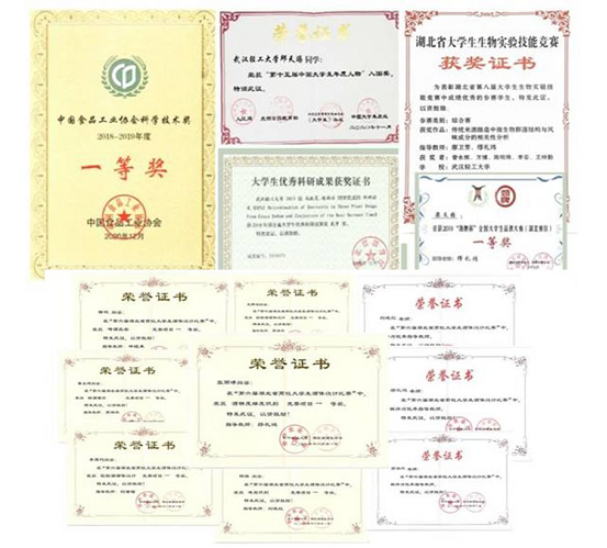 本专业学生先后有50人次在省级酒体设计大赛中获得奖项。每年获得湖北省生物学实验技能大赛奖牌和大学生优秀科研成果奖。